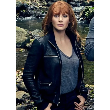 Could we please take the time to admire the JURASSIC WORLD DOMINION CLAIRE DEARING LEATHER JACKET, namely how lovely she looks in this jacket? She portrays Claire Dearing in the Jurassic World Dominion, as you shall see. The film, which will premiere on June 10, 2022, is jam-packed with action and adventure. This was written in great style by authors Emily Carmichael, Colin Trevorrow, and Derek Connolly, who did a tremendous job. People are going crazy with the stars' appearances and how the plot is visualized after the trailer was recently released. You can’t beat the class of Claire Dearing that is how she looks in JURASSIC WORLD DOMINION CLAIRE DEARING LEATHER JACKET.