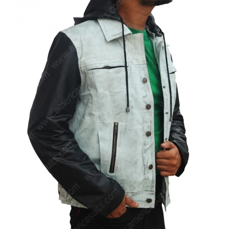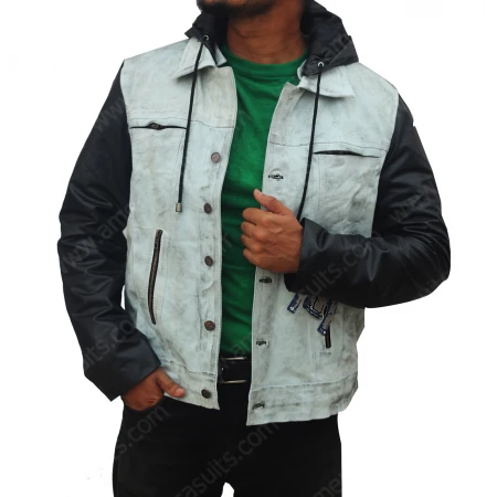 Our designers use premium quality denim material for crafting Justin Bieber Jacket. This outfit is also best for the people who like lightweight apparels. It has black leather long sleeves with open round cuffs. This jacket also has a classic shirt collar with stunning black hoddie. And it also has a button closure on the frontage. So avail this attire at your doorstep from americasuits.com.