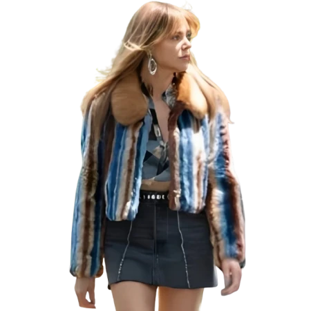 The Morgan Gillory Fur Jacket is a must-have for fashion-forward fans inspired by Kaitlin Olson's effortlessly bold look in High Potential. This outerwear brings cosy warmth to stand-out style and performs perfectly for the cold days when you want to be in the limelight, attracting attention.