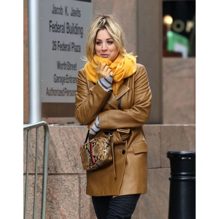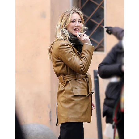 The external covering of Kaley Cuoco Jacket is durable to wear because we always use the finest quality material for this purpose. A perfectly finished wide notch lapel style collar is crafted for an amazing appearance. A double-breasted button is present for the front closing and to make it more fit according to your body shape, a belt is present. Meanwhile, on the inner side of the Leather Jacket, a viscose material is lined up. The sleeves are full and have open hem cuffs ending. This is a trench coat style jacket and has a slightly longer length as compared to other jackets. Two flap pockets are present on the outer waist side. The color The Flight Attendant Jacket is golden brown which is hard to find in any ordinary outfit. Make it yours now!