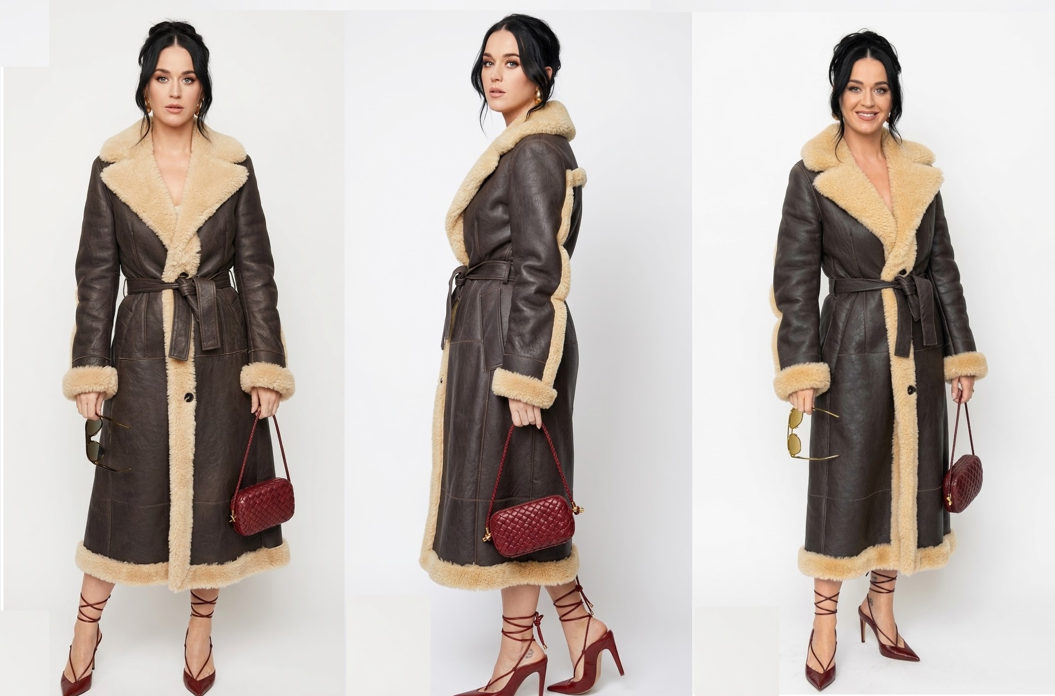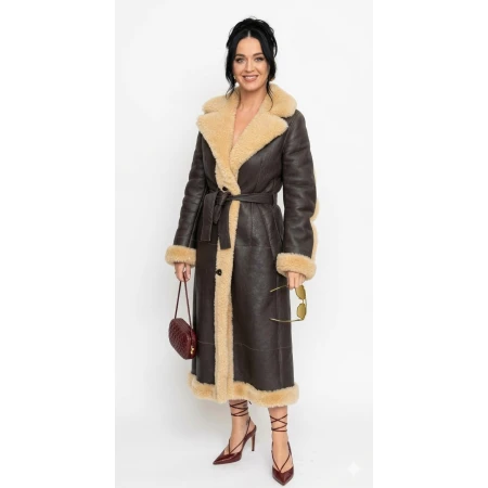 Katy Perry Brown Leather Long Coat