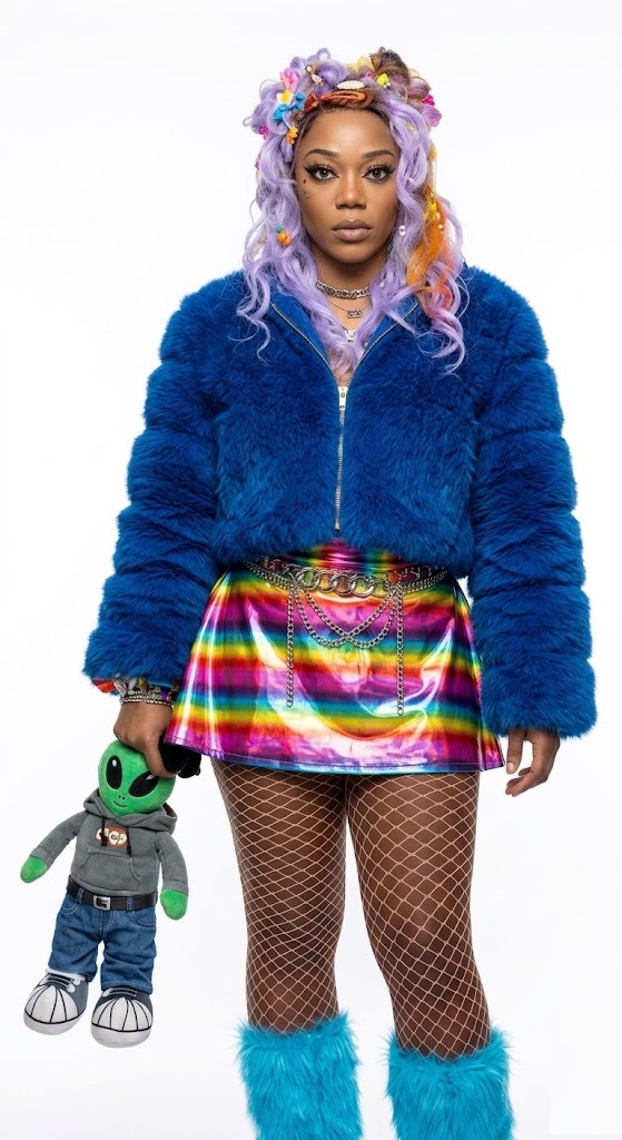 I Love Boosters 2026 Keke Palmer Blue Faux Fur Jacket