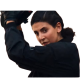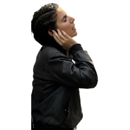 lead actress of Asseraf looks extraordinary in one of the black bomber jackets that