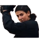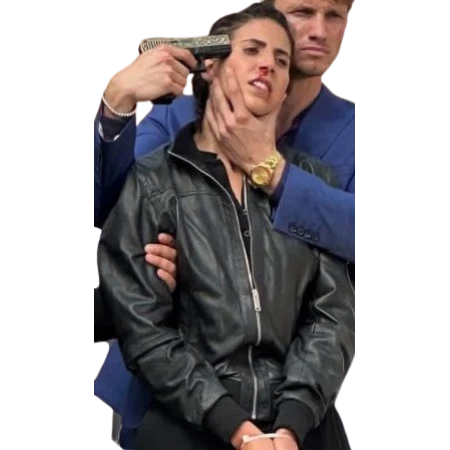 lead actress of Asseraf looks extraordinary in one of the black bomber jackets that