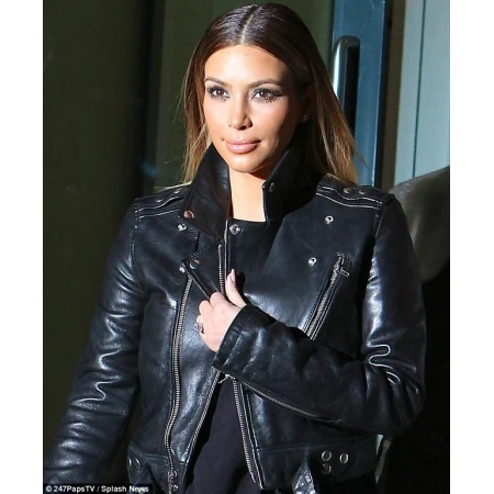 All-American Kim Kardashian who is an actor, a businesswoman, and a model is known for her stylish clothing and her looks. She was traveling to Paris wearing a black leather biker jacket and showed up at the airport and became the center of attraction. Kim Kardashian enjoyed becoming the center of attraction and was available for a photographer to show off and she enjoyed it. Her confidence along with black jacket she wearing make a perfect combination of a wildcat. Kim Kardashian Black Biker Style Leather Jacket For Women is now becoming a popular jacket among the ladies and all the women who even look close to be like Kim Kardashian are purchasing this jacket. The Kim Kardashian jacket is made from genuine leather with zipper closure and has viscose lining inside for extra comfort. The black leather jacket for women is made of shiny leather with zipper pockets as well. This is a breaking news for all the fans of Kin Kardashian that America Suits is offering the Kim Kardashian jacket on the sale price of just 169.99 with free delivery. So avail this chance now and change your personality into a celebrity