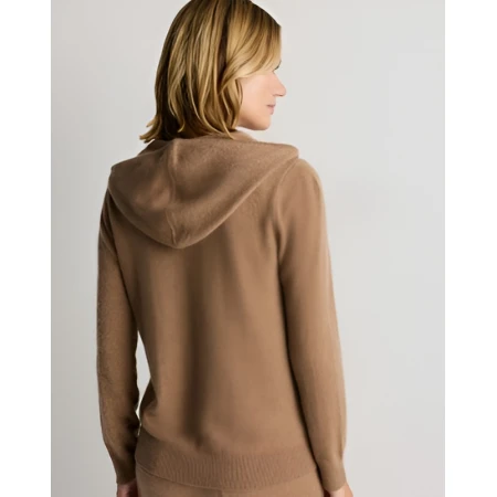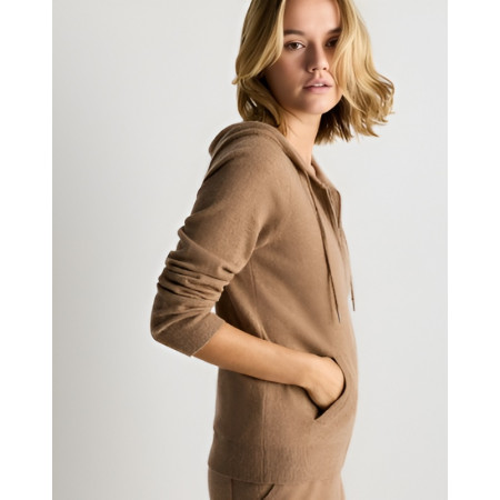 Designed for women who appreciate quiet refinement in their most casual pieces, this Knit Zip Up Hoodie in Camel Brown is made to accompany a well-balanced life-one that moves between comfort, polish, and personal ease. A piece best placed in a wardrobe that draws confidence from purposeful consideration rather than overstatement, offering calm luxury that feels approachable and not contrived.