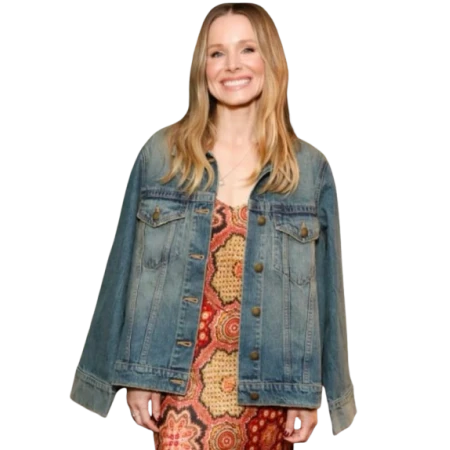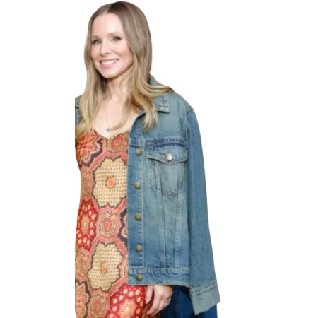 Taking its cue from Kristen Bell's effortless style, the Blue Denim Jacket is perfect for making your casual outfits pop. This jacket's high-quality denim gives it the comfort and durability of a perfect blend. Kristen Bell Blue Denim Jacket is rich blue and can be worn in diverse ways depending on your outfit, from wearing it with jeans to wearing it over a dress. Its relative freedom, however, is well ordered, promoting a good flattering figure when worn, making it a fashion plus-one for those who wish to embrace a casual chic style.