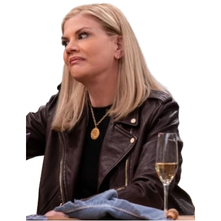 The Black Moto Jacket by Kristen Johnston provides just enough dazzle and confidence to suit every occasion, whether casual or otherwise. The character's powerhouse presence in Leanne 2025 infuses a constant vibe wherever you go. Pair this attire with jeans for a rugged look, or style it with boots and a dress for the perfect finishing touch!