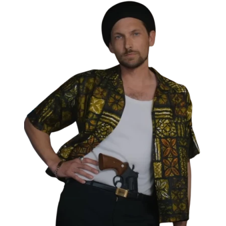 Make a bold statement in the Kyle Mac Government Cheese Darius Shirt, a fashion-forward piece inspired by the excellent 2025 movie Government Cheese. Worn by Kyle Mac, playing Darius in the film, this multicolor shirt is the perfect crossover of creativity with comfort and standout streetwear style.