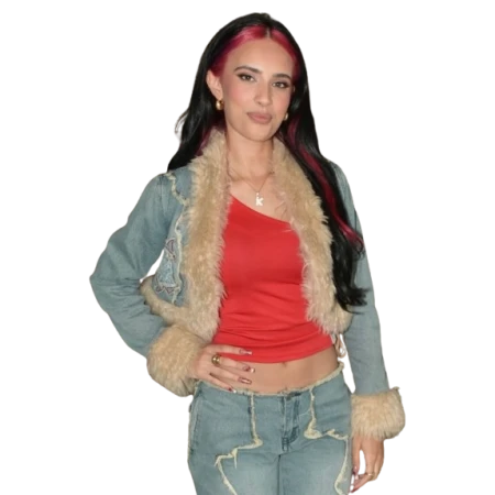 Actress Kylie Cantrall Despierta América Blue Fox Fur Cropped Denim Jacket