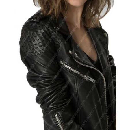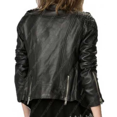 Item Description For Laurel Lance Black Stitched Leather Jacket: