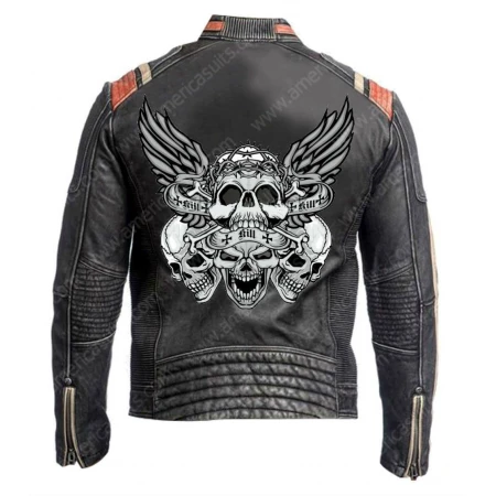 Item Description For Leather Biker Jacket Skull Print: