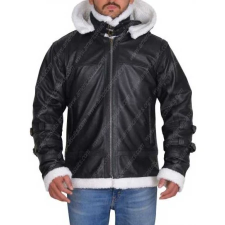 Mens Leather Shearling Bomber Jacket