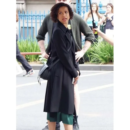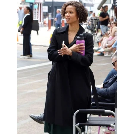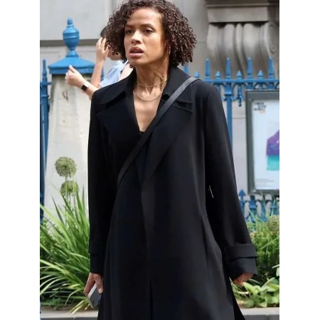 Pair The Lift 2024 Gugu Mbatha Raw Black Trench Coat with stylish apparel. You can easily make a stylish look at any gathering by wearing this Gugu Mbatha Raw-inspired outfit. It has a black colour which promotes simplicity and grace. The sophistication is also enhanced with the help of its design comprising of belted closure, lapel collar, and full sleeves.