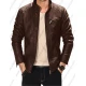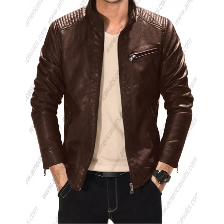 Men Brown Quilted Leather Jacket Lihgy Weight