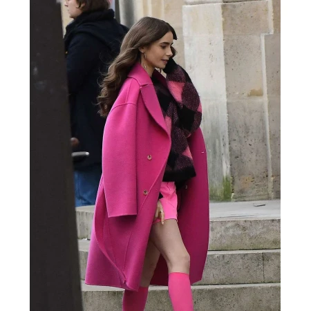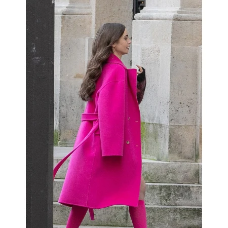 A bright pink must be an ideal choice for all those women who want to look prominent. Lily Collins Coat is manufactured from a wool blend material along with the inner viscose lining, both will provide protection from the winter breezes. The front side easily secure with the help of button fastening and belt specifications. Lapel style collar, open hem cuffs, and two outer flap pockets are other features of Emily In Paris Coat that are liked by our customers. Below the knee level length easily paired up with any jeans or skirts outfits. Hurry up! Don't think anymore and place your order as soon as possible!