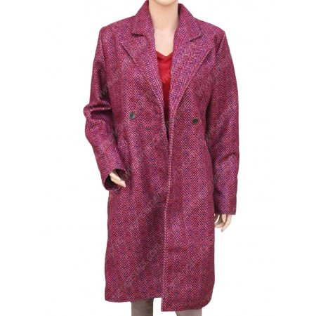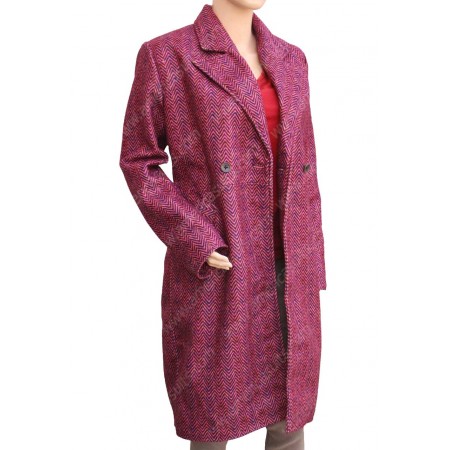 Bea, in her series, has appeared with a red and white ridged woolen coat, which looked lovely. As the coat is a woolen blend, so the texture of the surface is windswept tweed. The collar style is standard notch along with long loose sleeves with open hem cuffs. The front closure is double-breasted. The side waistline pockets go well with the long length of the Living With Yourself Aisling Bea Coat. The coat has a perfect seamless formation ideal for upcoming occasions for women who prefer a style with modesty. This fall season bring yourself sensations of warmth and comfort with this piece of beauty on amereciasuits.com