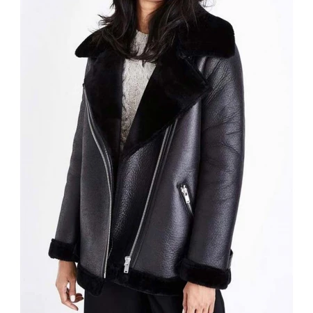 Laysla De Oliveira Jacket is made from leather material from the external side. The internal side has a viscose lining. It has a wide peak lapel-style collar that is designed from shearling fur. Leather Jacket is available in a dominant black color to make it more beautiful. The classic zipper front closure and shearling hemline and cuffs are additional authentic style features of this attire. Locke And Key Jacket also have multiple pockets, which include one front zipper pocket, two slanted zipper pockets on the waist, and two inner pockets. Locke & Key Dodge Jacket is a replica of an original jacket and is designed for all women to make them feel special. The sleeves of the jacket are designed as long and fitted. Everyone around will surely give you beautiful comments when you wear this jacket. So grab it from America Suits.