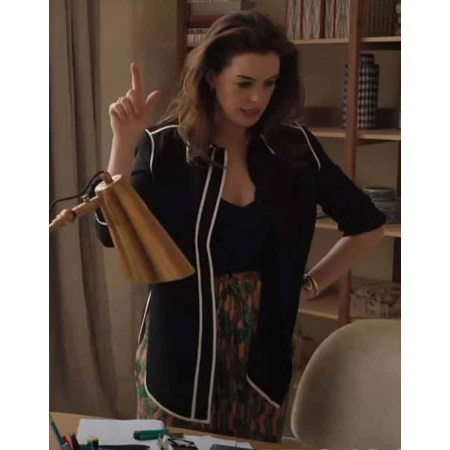 Anne Hathaway is the most popular and expensive actress. She has a charming face. In her acting industry, she carries all of the trending fashion gorgeously and perfectly. Similarly, she holds her brilliant fashion sense during the pandemic Lock Down 2021. She appears in a romantic and comedy heist movie named Locked Down 2021 wearing a beautiful black jacket. After this movie, this jacket was called Anna Hathaway's black cotton jacket. Also, this romantic and comedian movie describes all aspects of the lockdown scenario when everyone is locked down to their houses. The bold film star, Anna Hathaway playing the leading role of a lady as Linda Thruman who has a huge fan following. Locked Down 2021 Anna Hathaway Jacket is worn by Anna Hathaway and this jacket inspired many people especially girls.