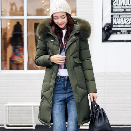 Women Winter Long Parka Green Coat