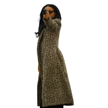 Capture the bold and charismatic style of Ariana DeBose in 'Love Hurts' with this striking leopard print coat. This coat embodies a powerful and confident look, blending a touch of glamour with a modern edge.