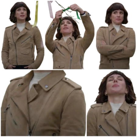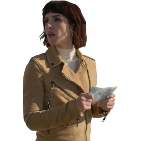 The beige suede leather jacket is a perfect piece of outerwear suitable for any event. Imagine stepping into the same chic outerwear Shenae Grimes wore in her movie Love of the Irish; this stylish jacket will elevate your wardrobe and catch many people's attention, making you look standout. This can be used as an everyday jacket. To get this versatile jacket, purchase it now from America Suits.