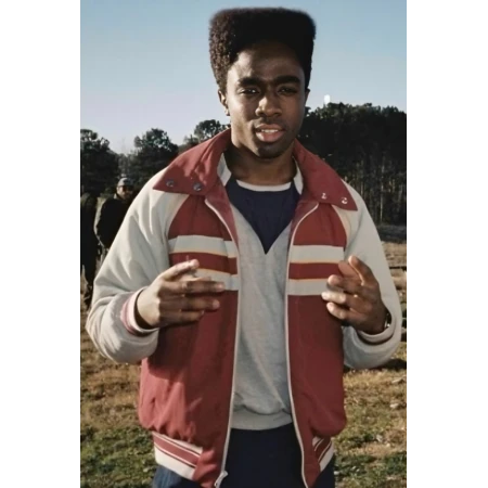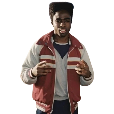 Crafted from premium blended fabric tested for long-term wear, this bomber jacket, worn by Caleb McLaughlin as Lucas Sinclair in Stranger Things Season 5, pays a close homage to the retro classic aesthetic line with modern-day usability. The facade fabric is thick, yet light and very comfortable, lasting through multiple seasons. This snug-fit zip and stylish closure bring the stand collar into a pristine finish. Full sleeves with ribbed cuffs and two front pockets make for a great working design. Oh, and the jacket still feels young; the red and white colors scream possible sporty but classy.