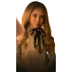 Crafted from premium suiting fabric and enhanced with a smooth viscose lining, the dress offers both structure and comfort. The sleek beige tone is perfectly accented by a blue striped bow, just like the on-screen version. Its classic A-line silhouette, button-front detailing, and contrast sleeves replicate Amie Donald’s exact look in M3GAN 2.0 (2025).