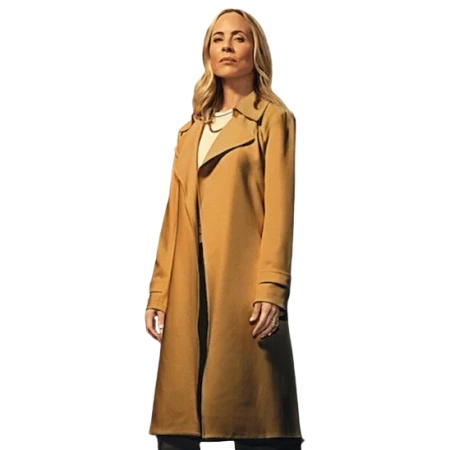 Mae Buckley, the waterfront Maria Bello trench coat, is influenced by power, poise, and female strength as seen in the character drawn by Maria Bello. It's neutral enough to be paired with denim, a skirt, or a dress, thus making it an essential item in one's closet. It is more than just outerwear; it is a style statement.