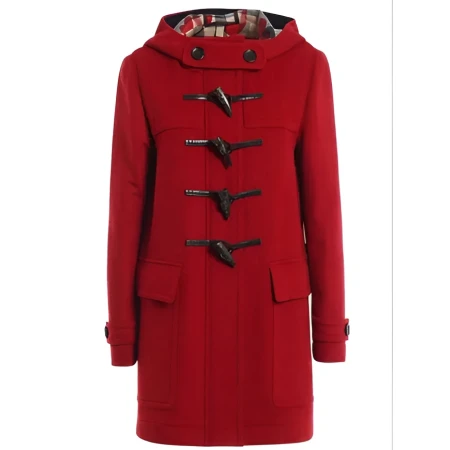 The woolen fabric is structured yet soft, beautiful on the surface, and well-shaped inside. The viscose lining provides comfort and is breathable to allow the wearer to be comfortable wearing it for days. The toggle closure ensures ease of fastening while allowing the clean lines of its silhouette to stand out; the hooded collar offers functional coverage, and full-length sleeves allow free movement. Done in a rich red hue, it enriches the color story of any seasonal wardrobe with warmth and personality. The entire coat is practically infused with two outer pockets and an inner pocket to hold all the essentials to be carried daily.