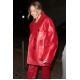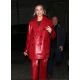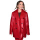Celebrity-Inspired Glossy Red Leather Pant Coat