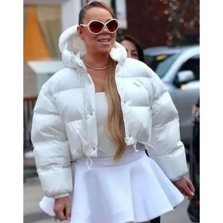 Mariah Carey Aspen Prada Cropped White Puffer Coat