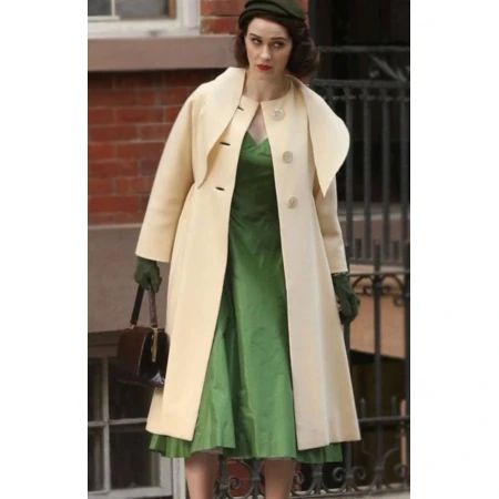 If you want to achieve a soft and elegant look, consider getting The Marvelous Mrs. Maisel Rachel Brosnahan Beige Coat. This coat is featured in The Marvelous Mrs. Maisel series and was worn by the stunning American actress Rachel Brosnahan. The series is an American period comedy-drama web television series created by the renowned American producer and director, Amy Sherman-Palladino. The Marvelous Mrs. Maisel series also features Alex Borstein, Michael Zegen, Jane Lynch, and many others. Rachel Brosnahan made her film debut in the horror film The Unborn.