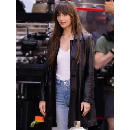 The Materialists 2024 Dakota Johnson Leather Jacket is a stylish piece. It has both fashion and style components. The Black jacket was borrowed from the actress Dakota Johnson. You can wear it for any occasion. It is manufactured using leather that is of good quality. The jacket feels costly and lasts long. It fits you perfectly well. This one should be bought regardless of the weather conditions in any season as it never goes out of fashion but looks beautiful and classy all the time