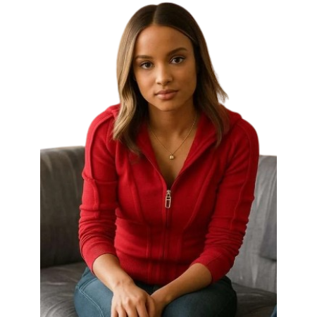Its interiors are cushy enough to rival the sumptuousness of its outer shell: in soft fleece fabric and smooth viscose lining, its wearability is great for lounging around for hours. A relaxed hooded collar does wonders for keeping extra cozy on chilly days, while the zipper closure is a practical measure. Options for full-length sleeves, two additional outer pockets, and one inner pocket have plenty altogether for the easy carrying of everyday essentials without any bulkiness. The capsule was painted bright red as a reference to Corinne Massiah's look from 9-1-1: simple yet a definite statement.
