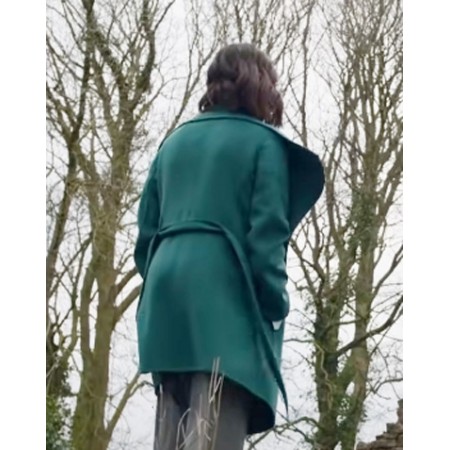 From the series mentioned above, we took the inspiration of Megan Stay Close 2021 Green Coat! This authentic green attire is made from wool blend material as an external covering that'll keep you warm and comfortable. The adjustable belt fastening closing will allow you to wrap perfectly around the body according to size to get the desired fitting. The open hem cuffs and the ending of the full-length sleeves can't be seen in the picture, but they are designed beautifully by our talented designers. A shawl lapel-style collar will protect your neck correctly from the cold breezes of the winter season. Two welted pockets are situated on the outer waist side. Internal side specifications include a viscose fabric embedded on the inner side for ease.