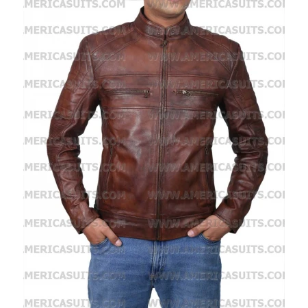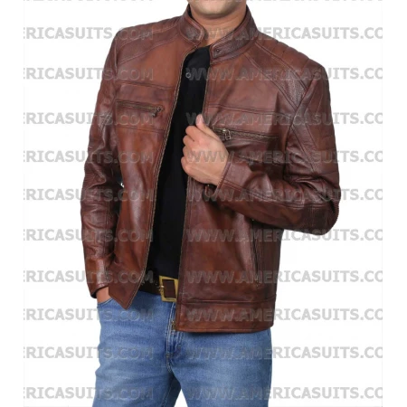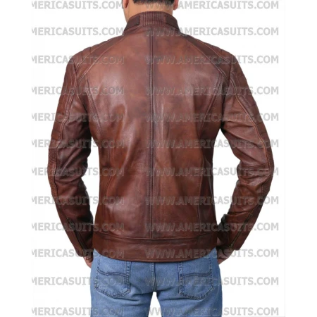 Item Description For Men Brown Waxed Cafe Racer Retro Jacket: