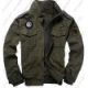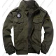 The features of this jacket possess round collar, three pockets, zipper closure and army-like detailing. The round collar covers the neck and zipper closure also has four copper buttons for closing the front. Two pockets are on chest side and one is woven on the right sleeve to give it uniqueness. The incredible detailing on the jacket resembles it to the soldier's uniform. For example, the parachute into eagle's wings is stitched above the right pocket which is also a symbol of the air force. Besides, thunder like a tree and different text are stitched on the left sleeve; a sleeve without a pocket. Cuffs are simple with small stitched up the line. Both sides of the jacket contain twin linings as a prominent highlight. The most important thing, the shoulder straps are present which is an integral part of military uniform. Overall, this men casual military jacket gives magnificent look and cozy feelings within a reasonable price.
