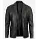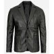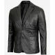 Men's 2 Buttons Notch Lapel Black Leather Blazer