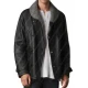 The coat has a fixed shearling collar that is sewn onto it.