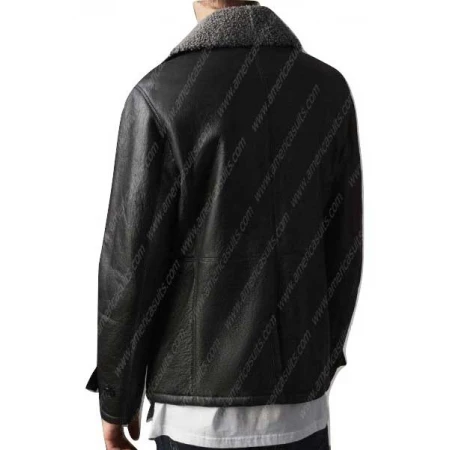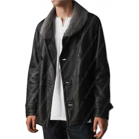 trends and fashion. The coat is made from durable leather and has a soft, shearling collar that provides warmth and style. Whether you are going