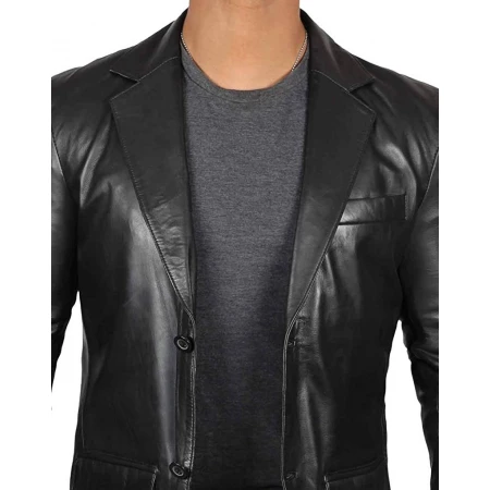 Introducing our Fashion Two Button Notch Lapel Black Leather Blazer Jacket for Men, a stylish and versatile addition to any wardrobe. Crafted with precision and designed to impress, this jacket is the epitome of sophistication and elegance. Whether you're heading to a formal event or looking to elevate your everyday style, this leather blazer jacket is the perfect choice. Made from high-quality materials, you have the option to choose between PU or real lambskin leather. Both options offer exceptional durability and a luxurious look and feel. The external layer not only adds a touch of sophistication but also provides protection from the elements, making it suitable for various weather conditions. Inside, you'll find a comfortable and breathable polyester lining that ensures maximum comfort throughout the day. The soft lining prevents any discomfort and allows for easy movement, ensuring that you can wear this blazer for extended periods without feeling restricted. The front of the jacket features a classic two-button closure, allowing you to adjust the fit according to your preference. The notch lapel adds a timeless touch, exuding a sense of refinement and elegance. Whether you're dressing up for a formal occasion or simply want to elevate your casual ensemble, this blazer jacket effortlessly enhances your overall appearance. Functionality is not compromised in the design of this jacket. It features three outer pockets, providing ample space to keep your essentials close at hand. Additionally, there are two inside pockets, allowing you to safely store valuables such as your wallet, keys, or smartphone. The black color of this jacket adds a touch of sophistication and versatility to your wardrobe. Black is a timeless shade that effortlessly complements any outfit and occasion, making it a must-have staple for every fashion-conscious individual. This leather blazer jacket is not only stylish but also practical. It's perfect for gifting, whether it's for a loved one or a friend. The exquisite craftsmanship and attention to detail make it an ideal present for birthdays, anniversaries, or any special occasion. Whether you're attending parties, going out on a date, or simply looking to add a touch of elegance to your winter wear, this black leather blazer jacket is your go-to choice. It effortlessly combines style, comfort, and functionality, ensuring that you always look and feel your best. Invest in this Fashion Two Button Notch Lapel Black Leather Blazer Jacket for Men and elevate your wardrobe to new heights. Experience the luxury of high-quality materials, impeccable design, and versatile style. Make a statement wherever you go with this timeless and sophisticated piece that will become a staple in your collection.