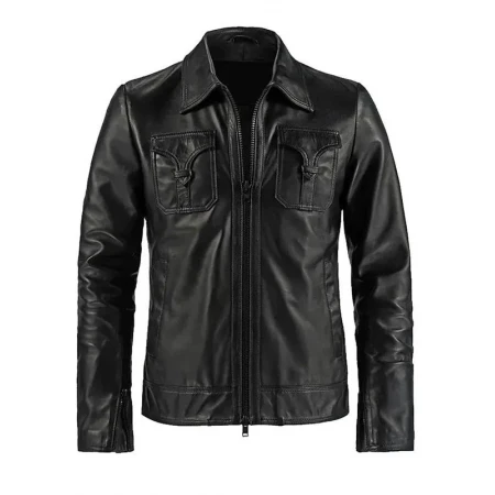 This jacket is made in shirt collar style with a zipper closure to ease their movement. If you are planning for a dark modern appeal, you can make this Leather Jacket your fashion statement. It also comes with six pockets in total. Four are present on the outer part and two are present on the inner part.