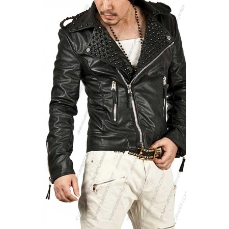 Product Description For Men Studded Black Leather Jacket: