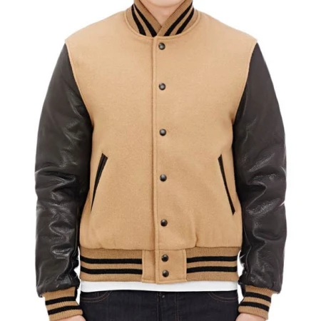 Product Specifications For Men Tan And Brown Varsity Jacket: