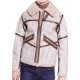 Unusual Design: The jacket has a singular design with a white body that is smoothly finished with brown leather stripes. This