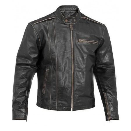 This dress has been readied from the top class fabric that is upset dark cowhide. The bothered cowhide structures harsh and extreme impression. The "Upset Leather Motorcycle Jacket" is the favored decision of the biker riders as a result of innumerable features which assume imperative part in making your persona extraordinary. The exceptional snap tab neckline is given in it. One flat zipped pocket is included the left midsection and two side zipper takes are for your critical things. The "Vintage Leather Motorcycle Jacket" has front zip shutting and since a long time ago fitted sleeves. The internal coating is fabricated from the cozy and tough material in this manner you appreciate it when you wear. The shoulder is given with the zip that has made it special. The "Troubled Black Leather Jacket" is accessible in advanced dark shading. The sewing is perfect and fine on the grounds that it has been readied under the expert staff.