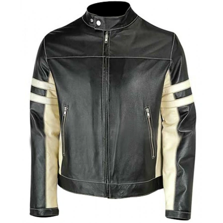 Mens Black Biker Jacket with Stripes