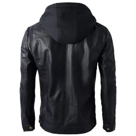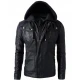 Mens Black Faux Leather Jacket with Hood