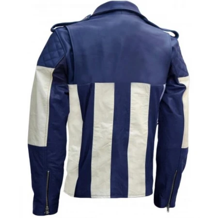 Product Description For Men Blue And White Motorcycle Leather Jacket: